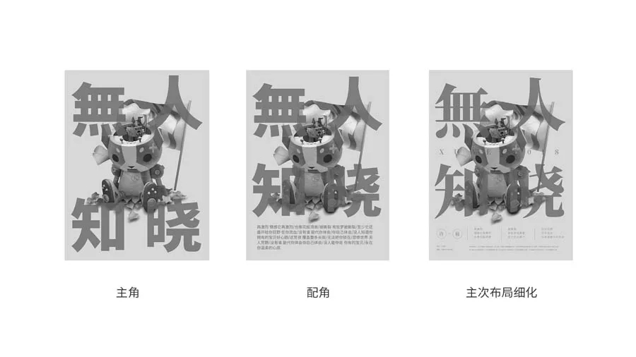 在開(kāi)始動(dòng)手做之前我就想好了這次想做一個(gè)視覺(jué)直觀(guān)而強烈的海報,再加上主體是文案和素材的結合,所以我才采用了滿(mǎn)版構圖。在黑白灰中將主角和配角的位置確定好,再去調整字體和距離。