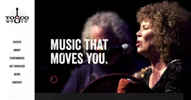 以Tosco Music 為例,他們的頁(yè)面設計就給訪(fǎng)客的第一印象就相當不錯,網(wǎng)站中包含了一系列有趣的視覺(jué)設計: