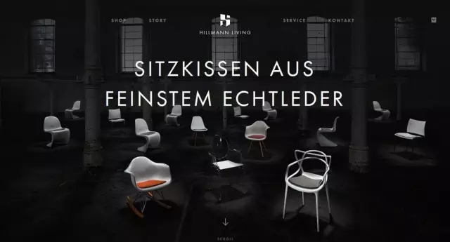 Hillman Living 的首頁(yè)采用了一張看起來(lái)略顯荒涼單調的圖片來(lái)營(yíng)造冷峻的氛圍,同時(shí)用顯眼的暖色調來(lái)點(diǎn)綴,與整體的氛圍構成對比,緊緊抓住用戶(hù)的注意力,讓用戶(hù)注意到圖中獨特的椅子。